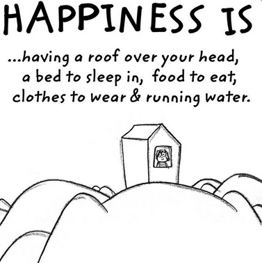 Totally agree with the ”Happiness is… ” drawing. And, indeed, running water is must for anyone’s happiness. Add to that a book to read and I’m in seventh heaven. 🙂