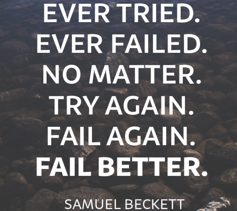 I shared with my friend a quotation from the Irish playwright Samuel Beckett, “Ever tried. Ever failed. No matter. Try again. Fail again. Fail better.” We discussed what this meant and how these words could help my friend stay motivated and continue to practice on her paintings.