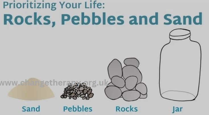 Take care of the rocks first – the things that really matter and are critical to your long-term wellbeing and happiness. If you deal with the big issues by putting the rocks in the jar first, the small issues can still fall into place. However, the reverse is not true.