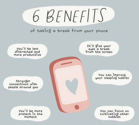 The benefits of a less stressful and healthy lifestyle by having a device-free break include:
